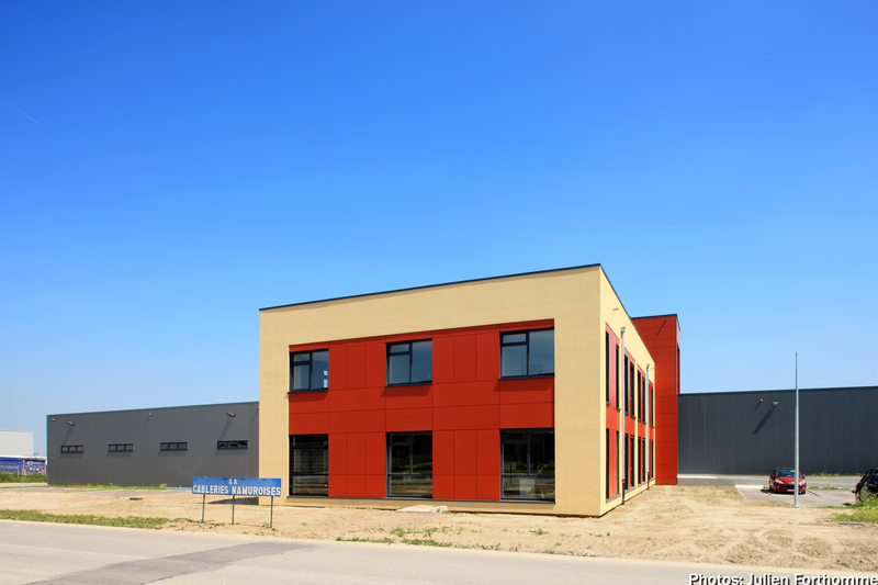 Les Câbleries Namuroises, négociants en câbles métalliques de levage, traction et arrimage, ont décidé de déménager de Jambes vers le zoning de Fernelmont. L’entreprise qui connaît une expansion à forte croissance, a fait construire de nouveaux bureaux (+/- 450 m² sur 2 niveaux), un atelier (+/-400 m²) et un hall de stockage (+/- 3.600 m²).