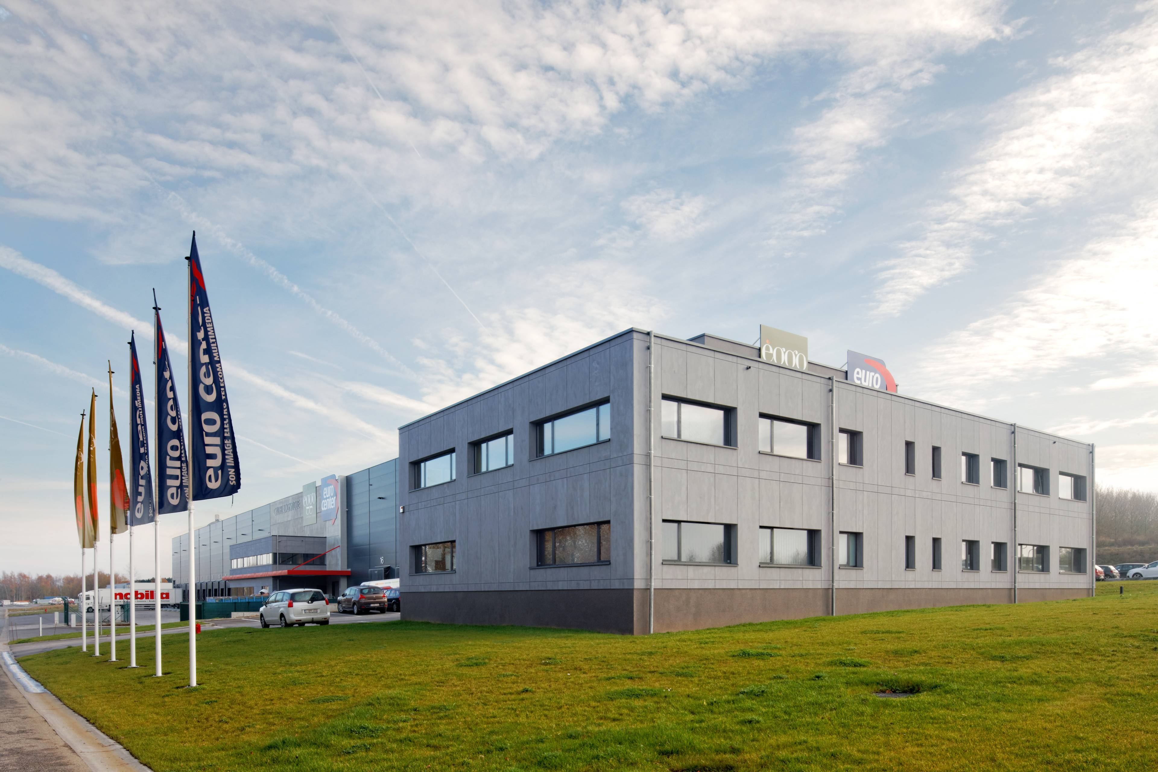 Il s’agit de la construction de 1.000 m² de bureaux administratifs, 9.500 m² de hall logistique et 7.800 m² de parking et de zones de manœuvre. L’étude de stabilité a été réalisée par Cobelba. D’un point de vue technique, le hall logistique a été réalisé avec des colonnes et poutres en béton (Ronveaux) et des panneaux sandwich. Les façades des bureaux administratifs sont réalisées en crépis et Ethercolor.